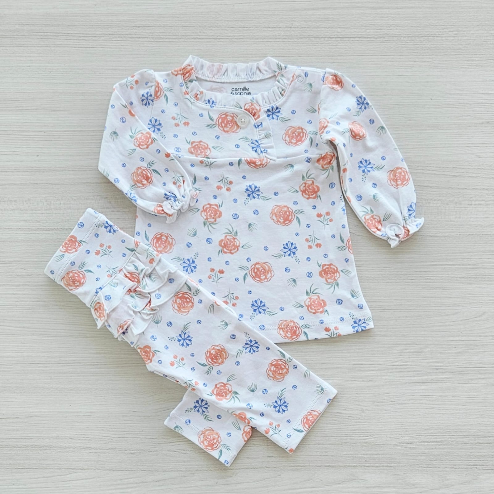 Our two-piece long-sleeve pajama set is carefully fashioned from organic Peruvian Pima cotton, promising utmost softness and adorableness. Your little one will revel in comfort and style all day. The pants are thoughtfully designed with a gentle, non-restrictive elastic waistband for your baby's ultimate comfort.