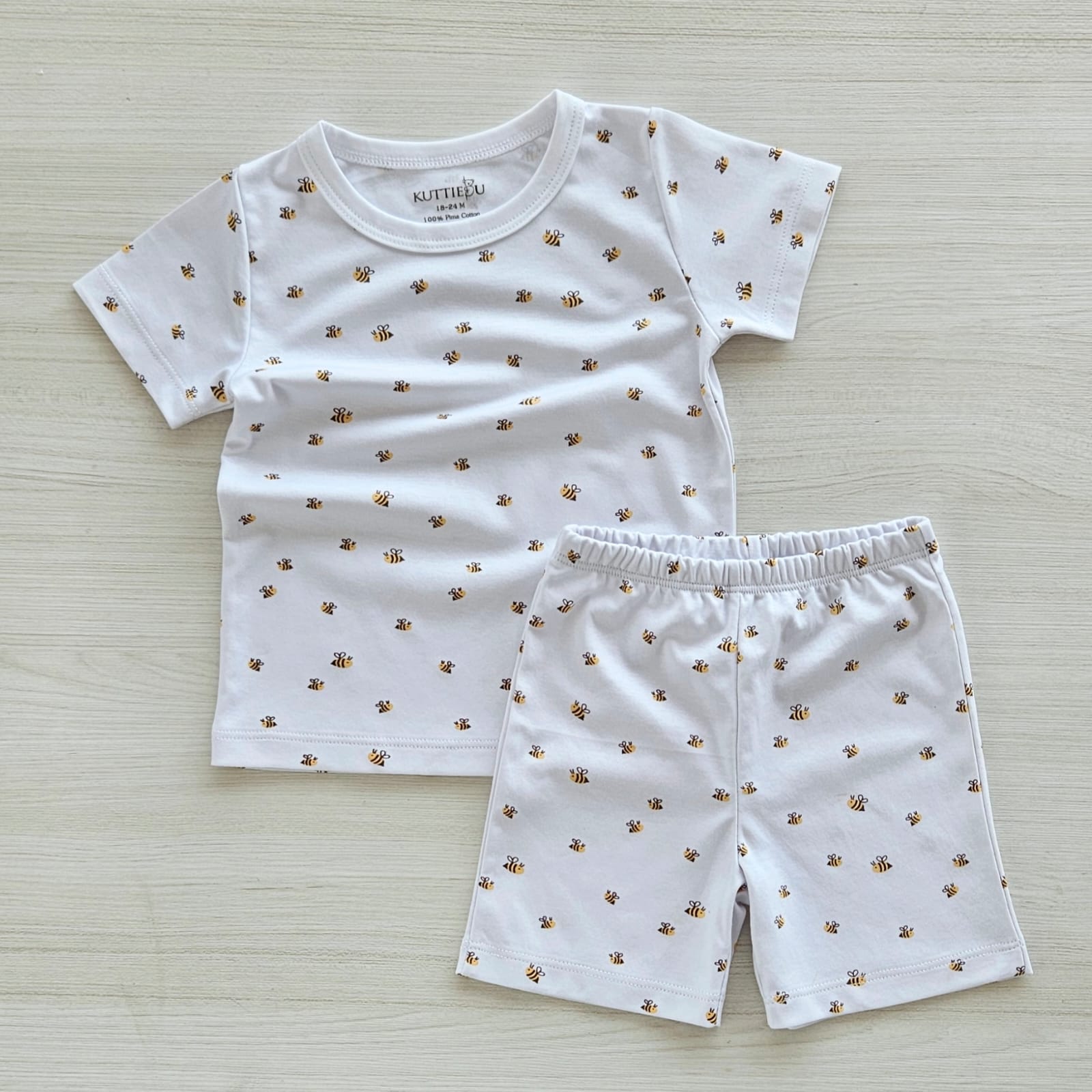 Our short pajama set, made from organic Peruvian Pima cotton, offers unmatched softness and charm. Designed for all-day comfort, it features a gentle, non-restrictive waistband to keep your little one cozy and free to move.