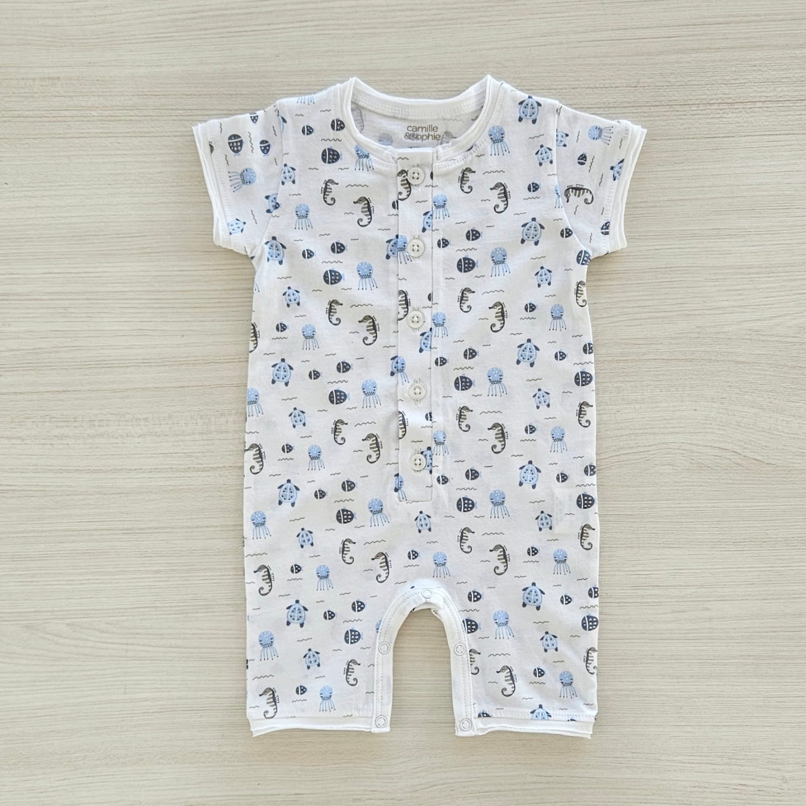 - Short-sleeved romper with underwater creature print