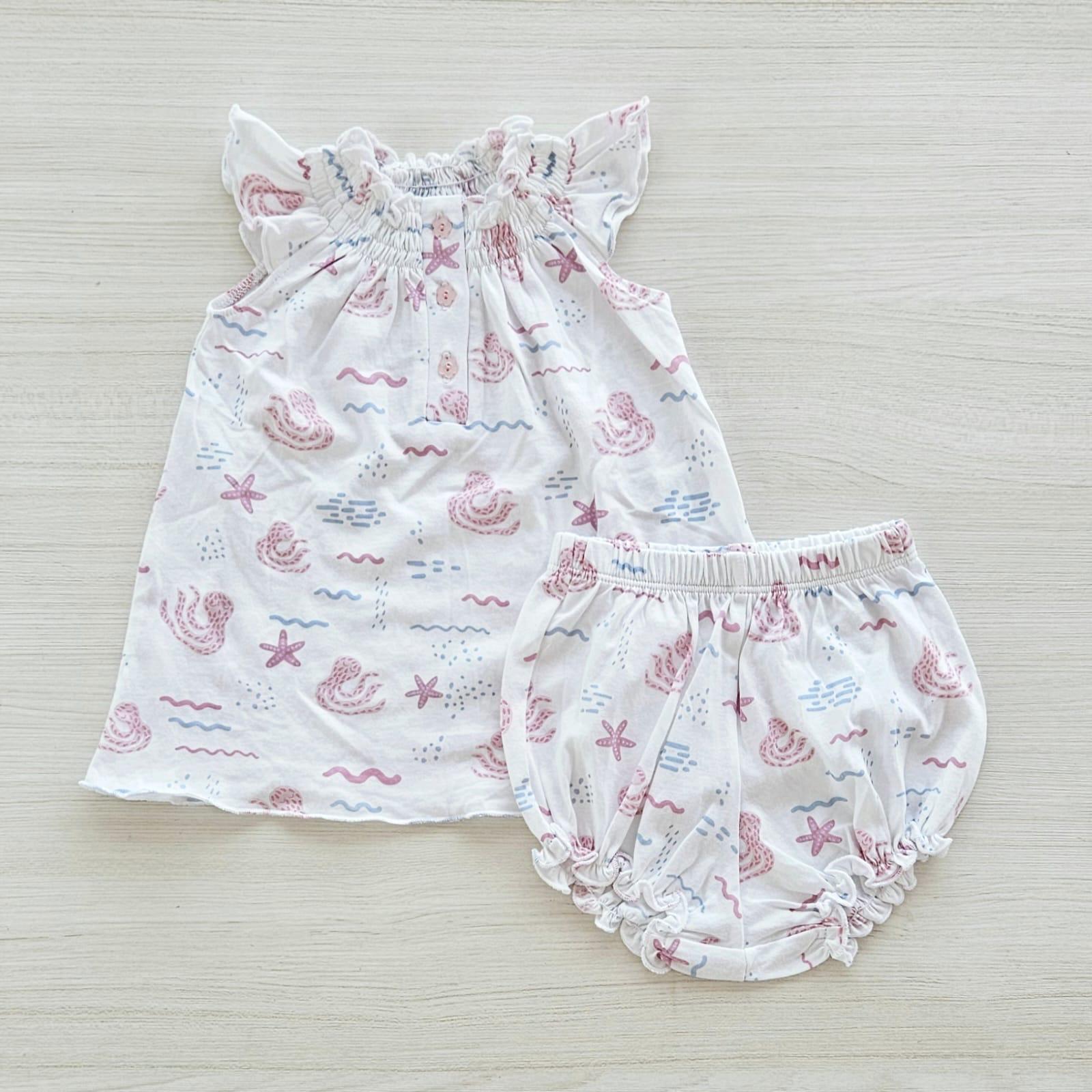 Our adorable Sea Friends Dress is meticulously crafted from organic and Peruvian Pima cotton, ensuring both softness and elegance. This lightweight and breathable dress is designed for ultimate comfort, allowing your little one to move freely while looking effortlessly stylish all day.