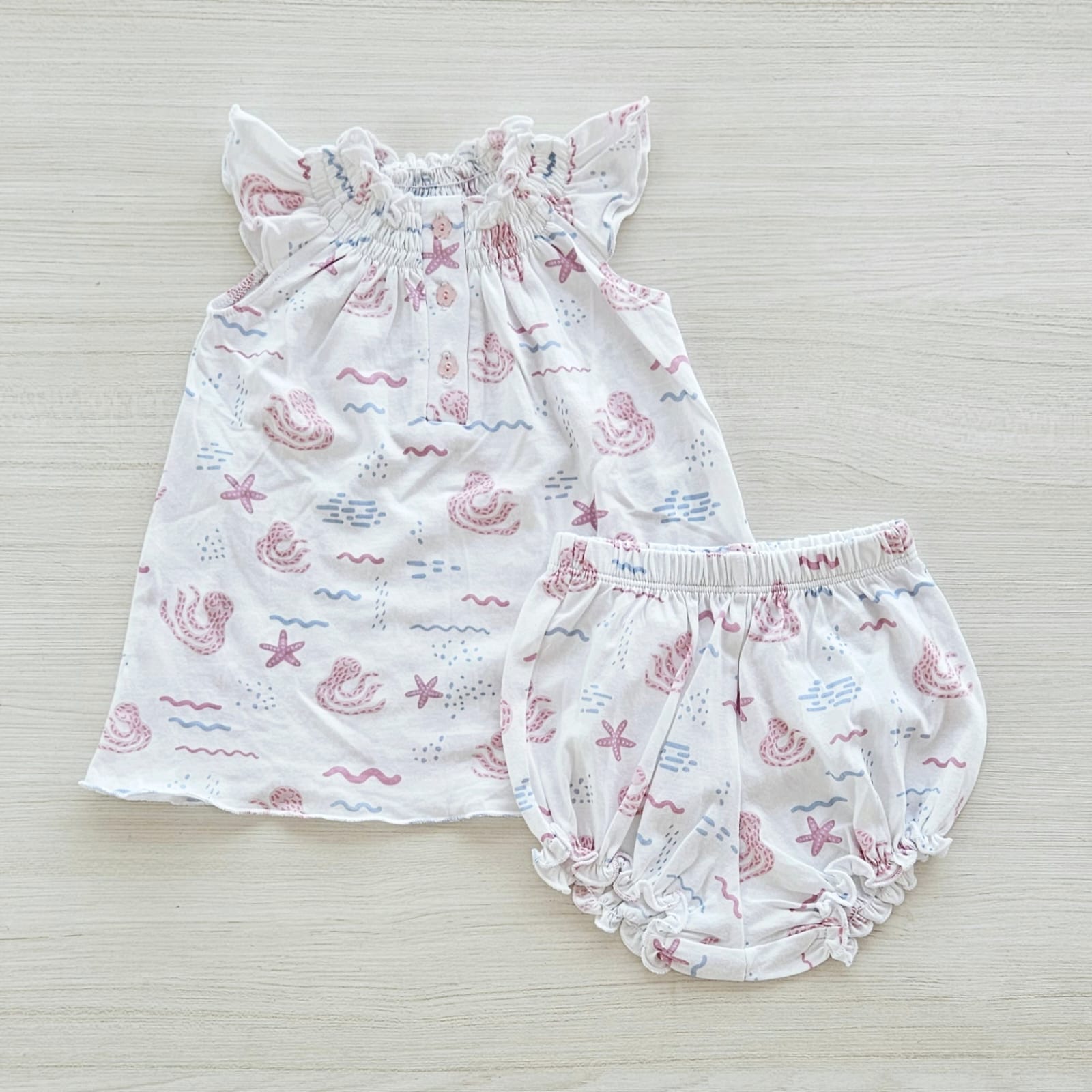 Our adorable Dress is meticulously crafted from organic and Peruvian Pima cotton, ensuring both softness and elegance. This lightweight and breathable dress is designed for ultimate comfort, allowing your little one to move freely while looking effortlessly stylish all day.
